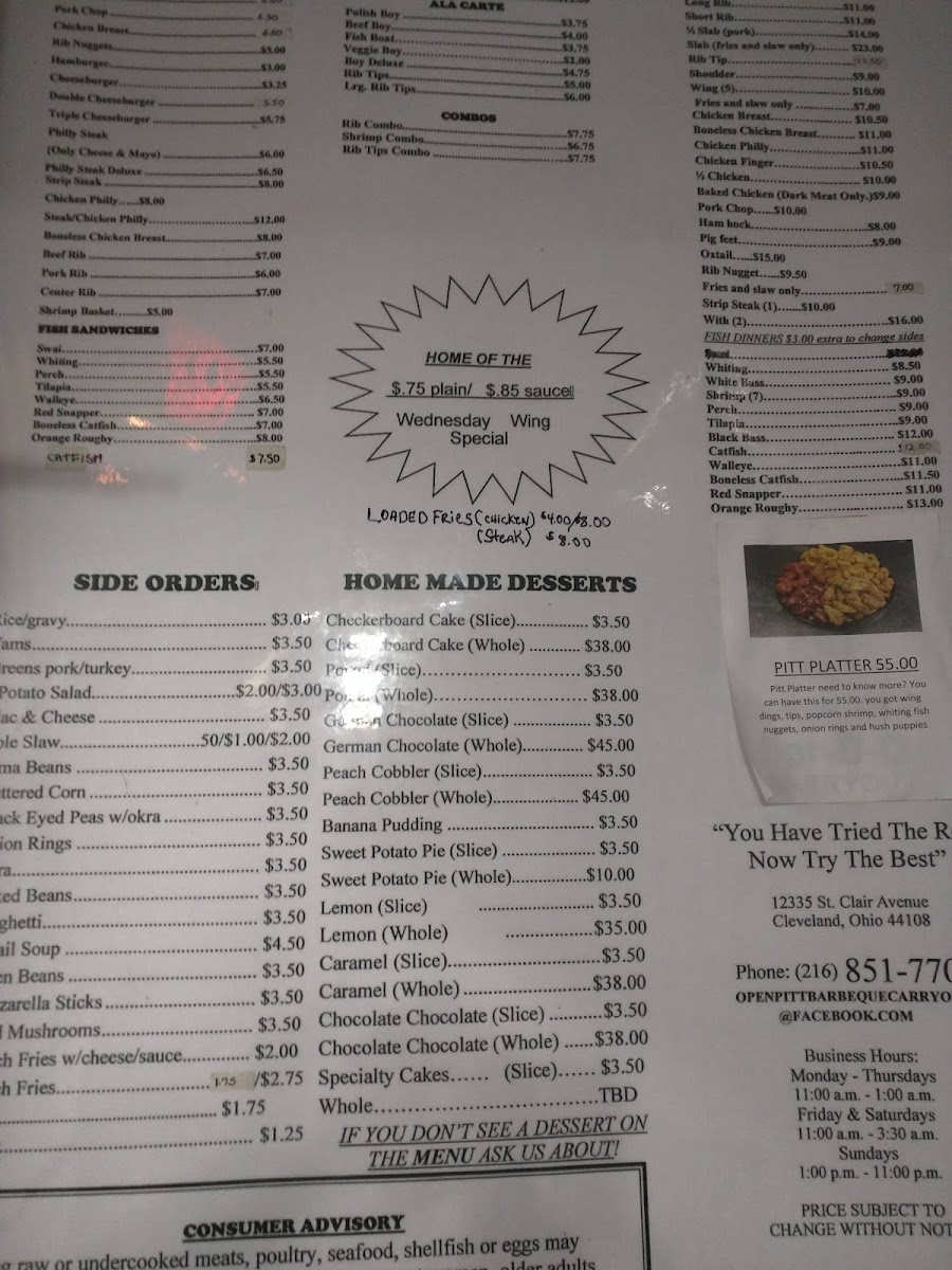 Open Pitt Bar-B-Que Menu